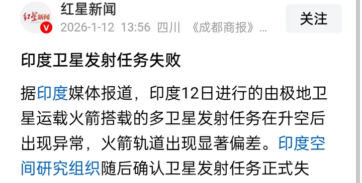 音书着手:《红星新闻》1月12日报说念《印度卫星辐照任务失败》开云官网切尔西赞助商