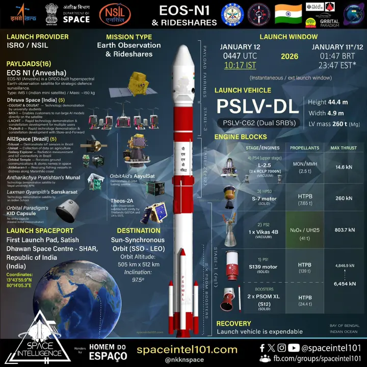 2026年1月12日,印度空间究诘组织在萨蒂什·达万航天中心辐照PSLV-C62火箭,筹画将1颗主星EOS-N1与15颗伴星送入预定轨说念,却在第三级飘扬末期突发姿态失控,在天际中不断翻腾,最终三级火箭连同16颗卫星一起偏离轨说念,坠入东经75度、南纬18度隔邻的印度洋中心位置。干系信息着手于印度空间究诘组织(ISRO)发布的飘扬数据、我国新华网等媒体皆有干系报说念。