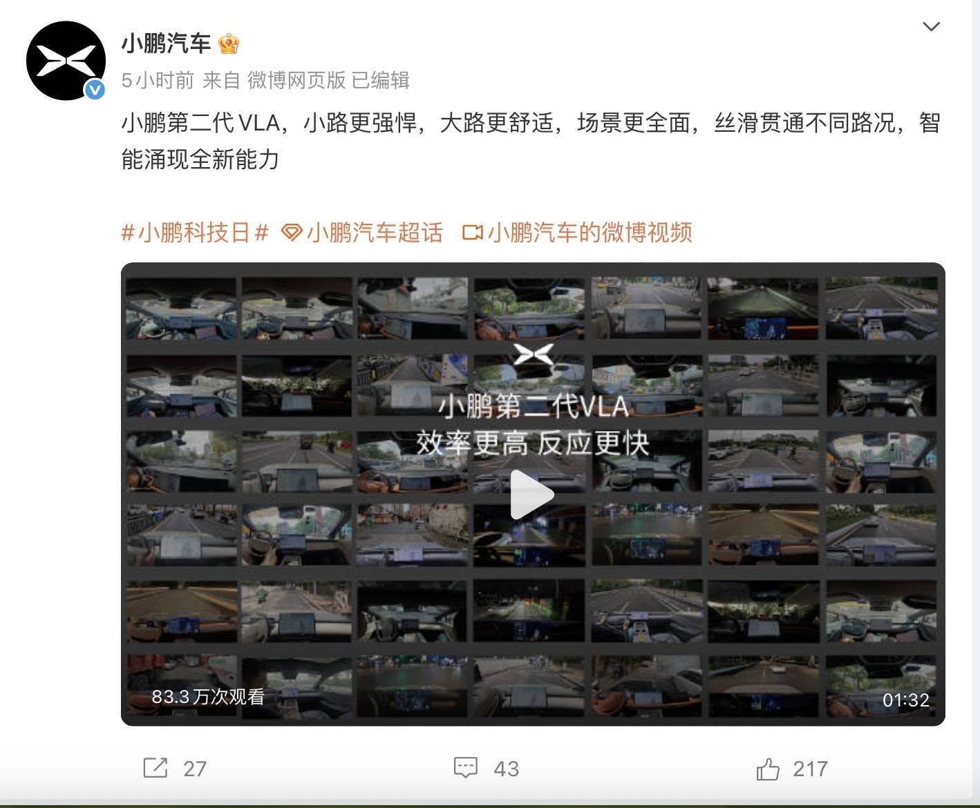 凤凰网科技讯 11月5日,小鹏汽车董事长何小鹏发文称,当年六年科技日,咱们建议过不少果敢的思法:在全行业还没提升时,咱们就说城市扶助驾驶将“寰球齐能开”;在低空经济鲜为东谈主知时,咱们布局了遨游汽车;七年前,咱们已脱手机器东谈主研发。其时好多东谈主说咱们“太敢思”,但今天回头看,这些设思正逐个成为履行,也逐步成为行业的热点标的。从敢思到敢为,咱们一直在路上。 本日,小鹏汽车认真拉开2025年小鹏科技日的大幕,主题为“浮现”。何小鹏将携多项硬核技艺效力重磅亮相,共享边界袒护AI汽车、智能机器东谈